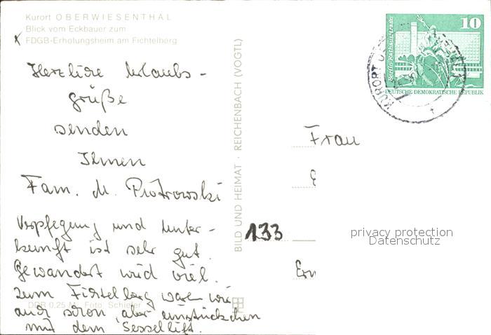 72074516 alte Postkarte Oberwiesenthal Erzgebirge Blick vom Eckbauer auf Erholungsheim Fichtelberg postalisch gelaufen Erhaltung siehe scans KatCode: 11110014171240