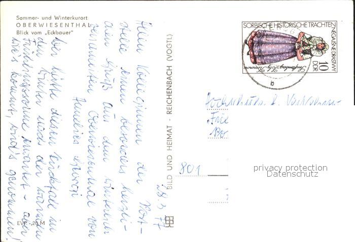72357988 alte Postkarte Oberwiesenthal Erzgebirge Blick vom Eckbauer Sprungschanze postalisch gelaufen Erhaltung siehe scans KatCode: 11110014171240