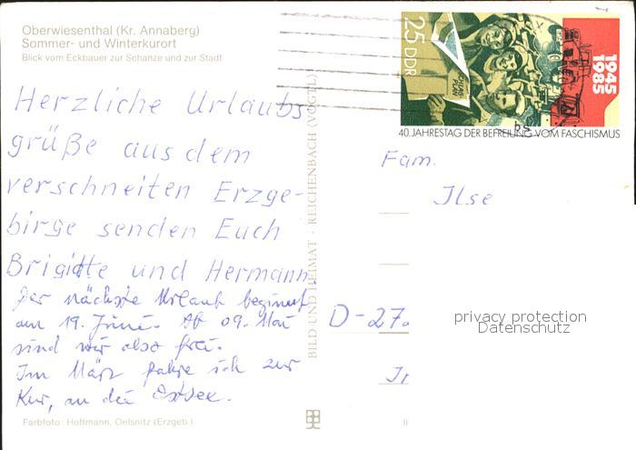 71983064 alte Postkarte Oberwiesenthal Erzgebirge Blick vom Eckbauer zur Schanze und Stadt postalisch gelaufen Erhaltung siehe scans KatCode: 11110014171240