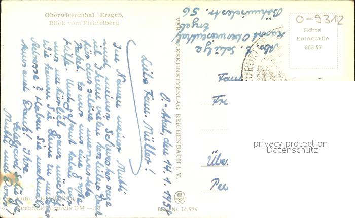 71930148 alte Postkarte Oberwiesenthal Erzgebirge Blick vom Fichtelberg Luftseilbahn postalisch gelaufen Erhaltung siehe scans KatCode: 11110014171240