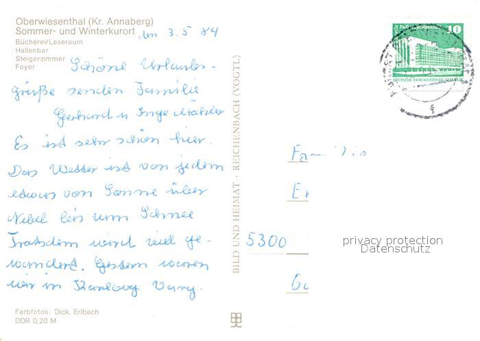 72948765 alte Postkarte Oberwiesenthal Erzgebirge Buecherei Hallenbar Steigerzimmer Foyer postalisch gelaufen Erhaltung siehe scans [WerneD78] KatCode: 11110014171240