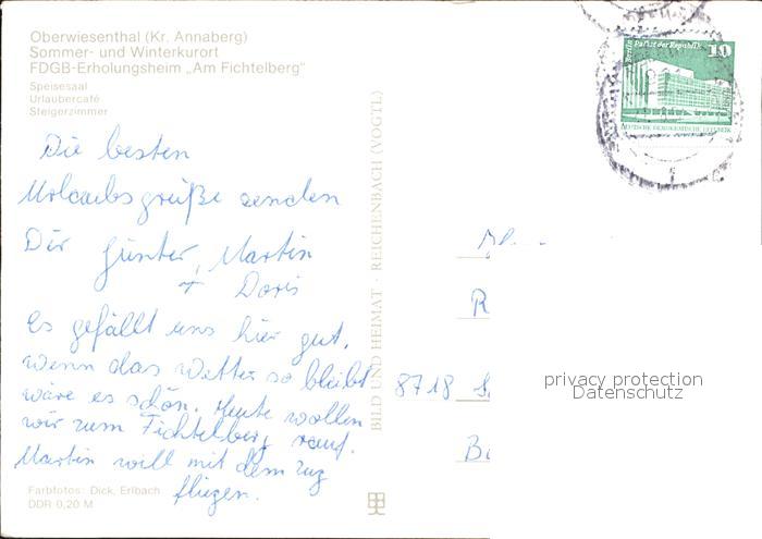 72503920 alte Postkarte Oberwiesenthal Erzgebirge Erholungsheim Am Fichtelberg postalisch gelaufen Erhaltung siehe scans KatCode: 11110014171240