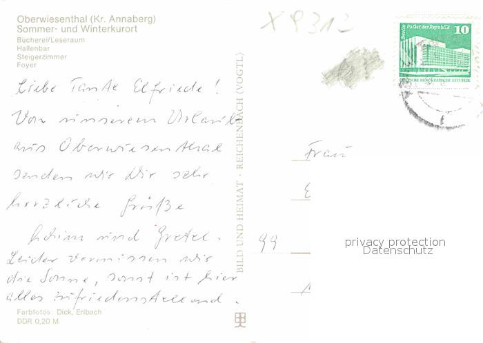 72668444 alte Postkarte Oberwiesenthal Erzgebirge Erholungsheim Am Fichtelberg postalisch gelaufen Erhaltung siehe scans [AndreD76] KatCode: 11110014171240