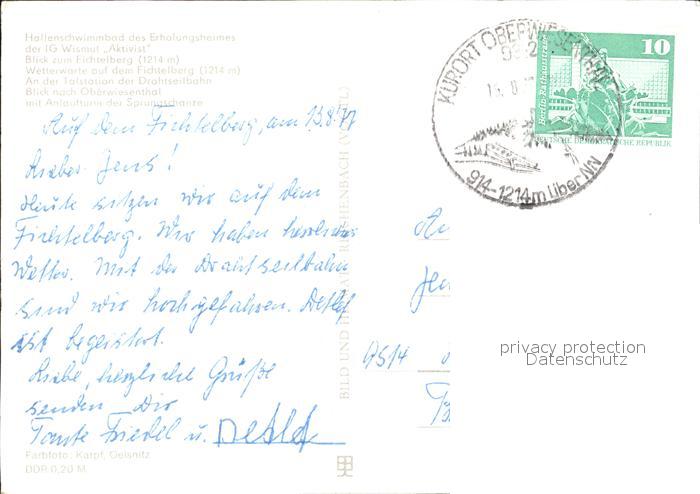 alte Postkarte Oberwiesenthal Erzgebirge Erholungsheim IG-Wismut Fichtelberg Wetterwarte Sprungschanze postalisch gelaufen Erhaltung siehe scans