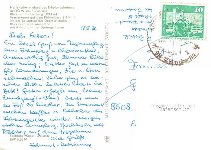 72630392 alte Postkarte Oberwiesenthal Erzgebirge Erholungsheim IG Wismut Fichtelberg Wetterwarte postalisch gelaufen Erhaltung siehe scans [LiesaD40] KatCode: 11110014171240