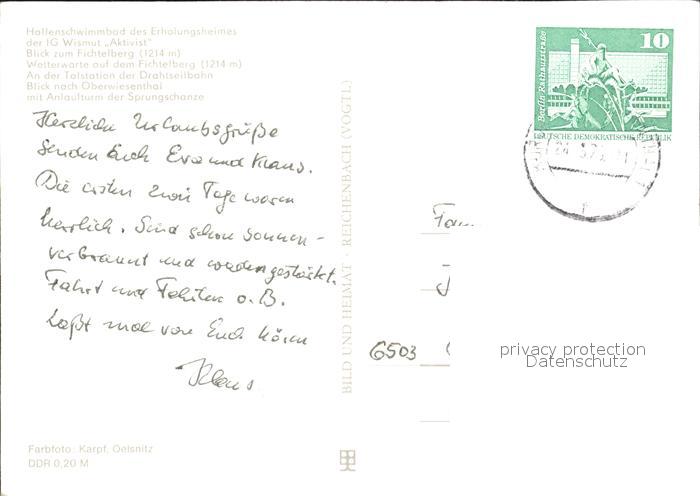 72243408 alte Postkarte Oberwiesenthal Erzgebirge Erholungsheim IG-Wismut Fichtelberg postalisch gelaufen Erhaltung siehe scans KatCode: 11110014171240