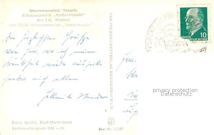 73334572 alte Postkarte Oberwiesenthal Erzgebirge Erholungsheim Sachsenbaude der IG Wismut im Winter postalisch gelaufen Erhaltung siehe scans [FriedD77] KatCode: 11110014171240