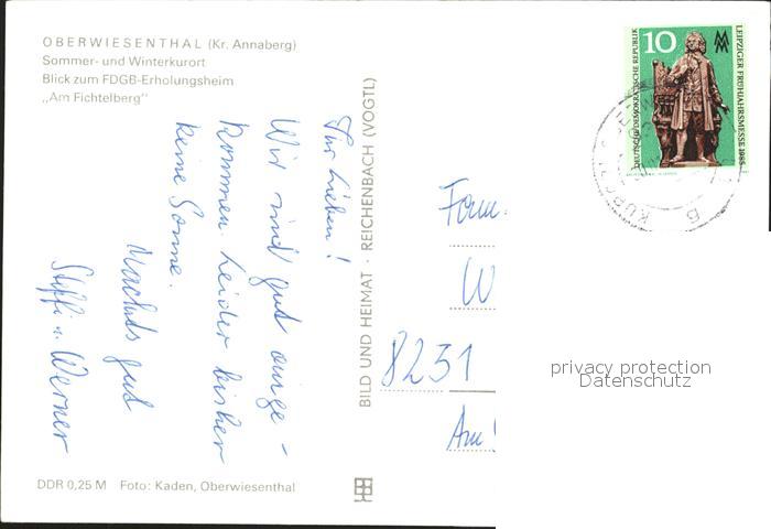 72358490 alte Postkarte Oberwiesenthal Erzgebirge FDGB Erholungsheim Am Fichtelberg postalisch gelaufen Erhaltung siehe scans KatCode: 11110014171240