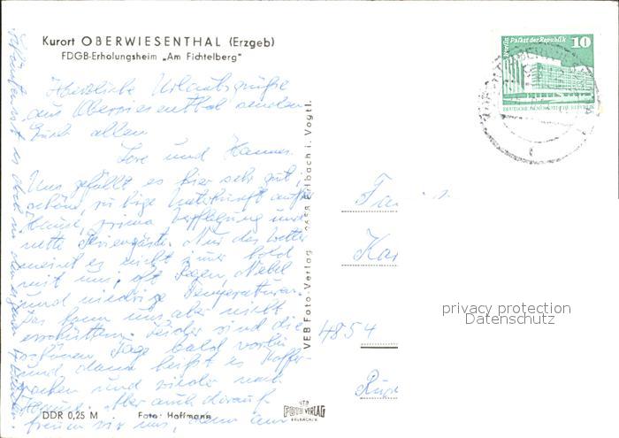 72047929 alte Postkarte Oberwiesenthal Erzgebirge FDGB-Erholungsheim Am Fichtelberg postalisch gelaufen Erhaltung siehe scans KatCode: 11110014171240