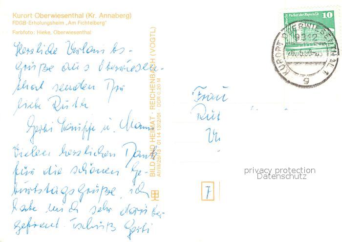 73103944 alte Postkarte Oberwiesenthal Erzgebirge FDGB Erholungsheim Am Fichtelberg postalisch gelaufen Erhaltung siehe scans [WerneD78] KatCode: 11110014171240
