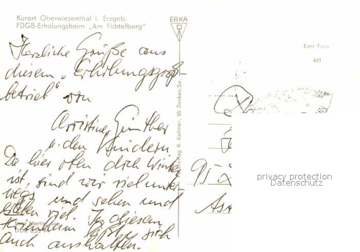 72729586 alte Postkarte Oberwiesenthal Erzgebirge FDGB Erholungsheim Am Fichtelberg Bergbahn Landschaftspanorama postalisch gelaufen Erhaltung siehe scans [FriedD77] KatCode: 11110014171240