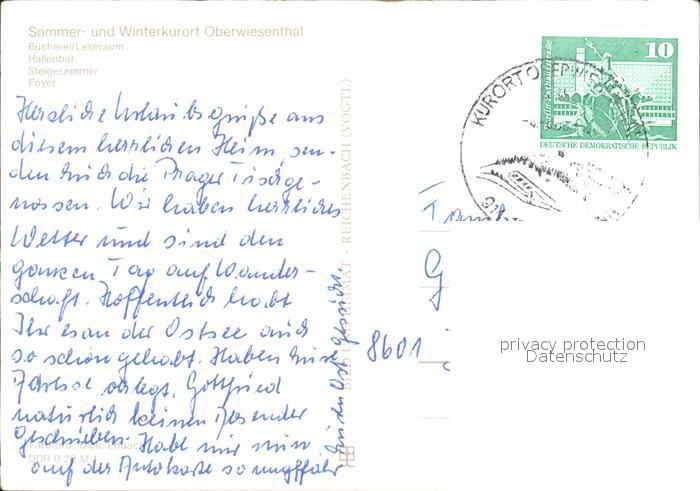 72374778 alte Postkarte Oberwiesenthal Erzgebirge FDGB Erholungsheim Am Fichtelberg Buecherei Hallenbar Steigerzimmer Foyer postalisch gelaufen Erhaltung siehe scans KatCode: 11110014171240
