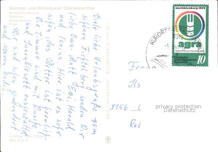 72249206 alte Postkarte Oberwiesenthal Erzgebirge FDGB Erholungsheim Am Fichtelberg Buecherei Hallenbar Steigerzimmer Foyer postalisch gelaufen Erhaltung siehe scans KatCode: 11110014171240