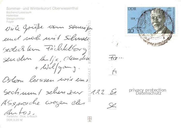 74025129 alte Postkarte Oberwiesenthal Erzgebirge FDGB-Erholungsheim Am Fichtelberg Buecherei Leseraum Hallenbar Steigerzimmer Foyer postalisch gelaufen Erhaltung siehe scans [FriedD77] KatCode: 11110014171240
