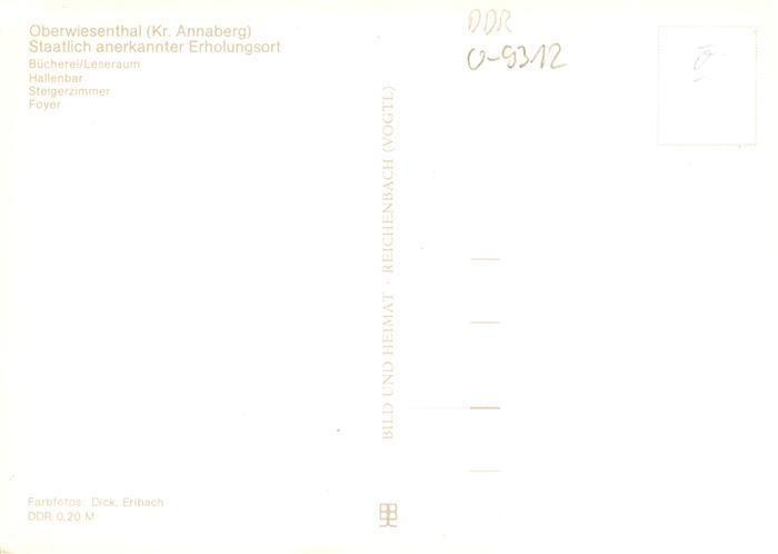 73947328 Oberwiesenthal Erzgebirge FDGB Erholungsheim Am Fichtelberg Buecherei Leseraum Hallenbar Steigerzimmer Foyer postalisch nicht gelaufen Erhaltung siehe scans [WerneD78] KatCode: 11110014171240