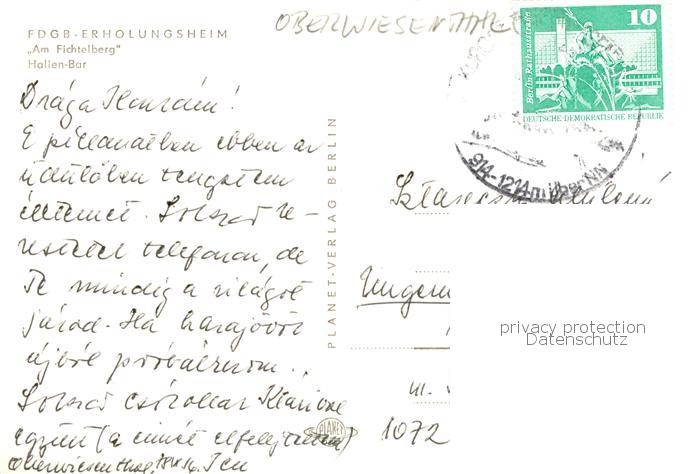 73810112 alte Postkarte Oberwiesenthal Erzgebirge FDGB Erholungsheim Am Fichtelberg Hallen Bar postalisch gelaufen Erhaltung siehe scans [FriedD77] KatCode: 11110014171240