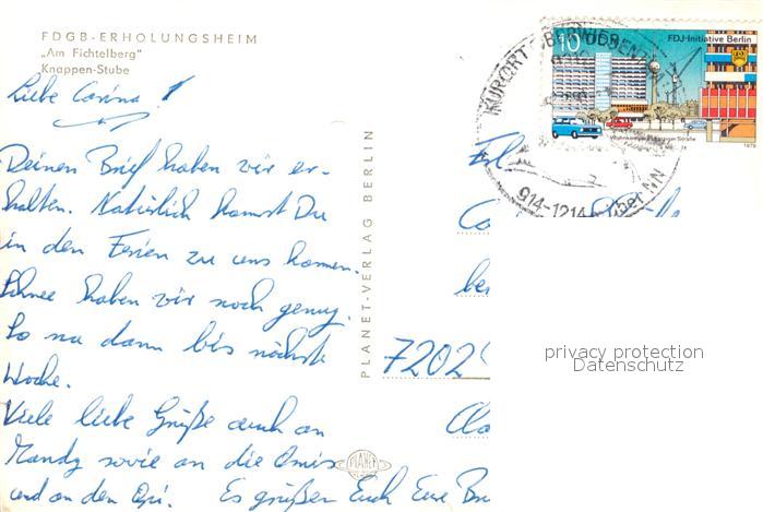 73210288 alte Postkarte Oberwiesenthal Erzgebirge FDGB Erholungsheim Am Fichtelberg Knappenstube postalisch gelaufen Erhaltung siehe scans [FriedD77] KatCode: 11110014171240