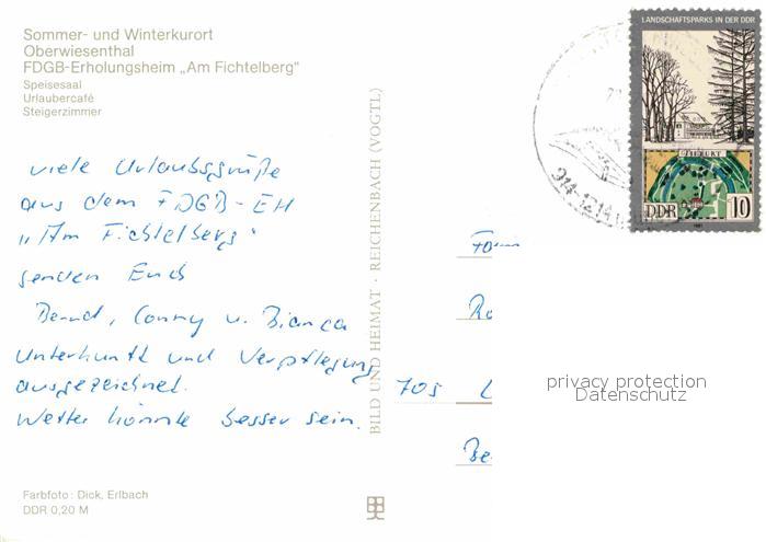 72800601 alte Postkarte Oberwiesenthal Erzgebirge FDGB Erholungsheim Am Fichtelberg Restaurant Kaminzimmer postalisch gelaufen Erhaltung siehe scans [FriedD77] KatCode: 11110014171240