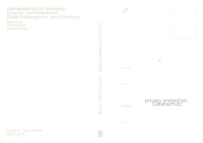 73065334 Oberwiesenthal Erzgebirge FDGB Erholungsheim Am Fichtelberg Speisesaal Cafe Steigerzimmer postalisch nicht gelaufen Erhaltung siehe scans [FriedD77] KatCode: 11110014171240