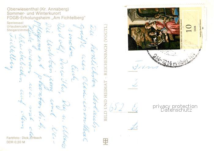 73040846 alte Postkarte Oberwiesenthal Erzgebirge FDGB Erholungsheim Am Fichtelberg Speisesaal Urlaubercafe Steigerzimmer postalisch gelaufen Erhaltung siehe scans [FriedD77] KatCode: 11110014171240