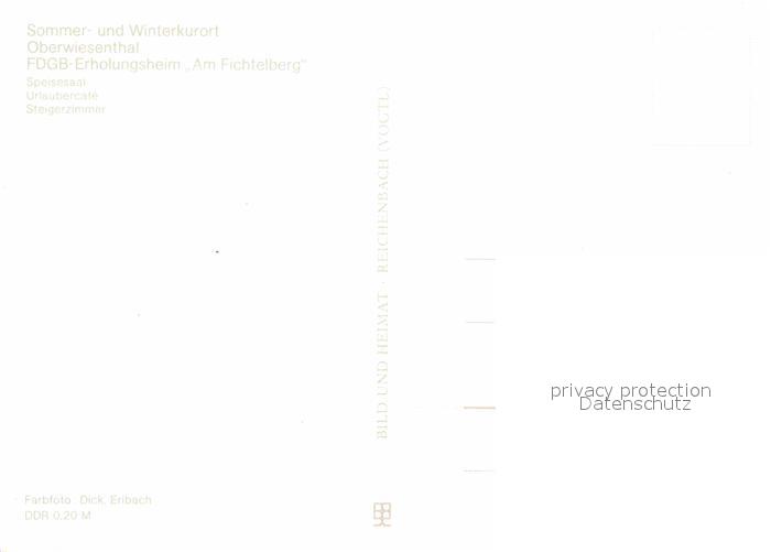 72683161 Oberwiesenthal Erzgebirge FDGB Erholungsheim Am Fichtelberg Speisesaal Urlaubercafe Steigerzimmer postalisch nicht gelaufen Erhaltung siehe scans [WerneD78] KatCode: 11110014171240