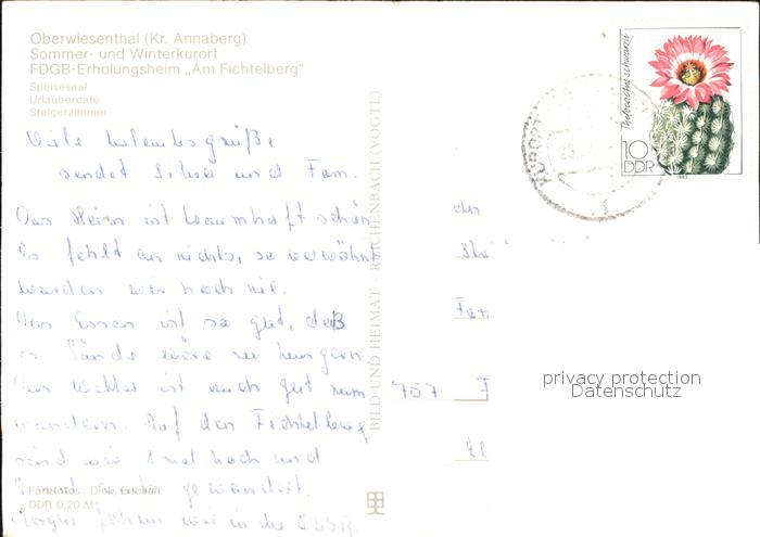 72590748 alte Postkarte Oberwiesenthal Erzgebirge FDGB Erholungsheim am Fichtelberg Speisesaal Urlaubercafe Steigerzimmer postalisch gelaufen Erhaltung siehe scans [WerneD78] KatCode: 11110014171240