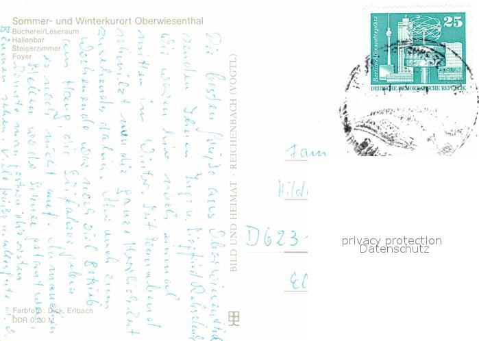 72872306 alte Postkarte Oberwiesenthal Erzgebirge FDGB Erholungsheim Buecherei Hallenbar Steigerzimmer Foyer postalisch gelaufen Erhaltung siehe scans [FriedD77] KatCode: 11110014171240