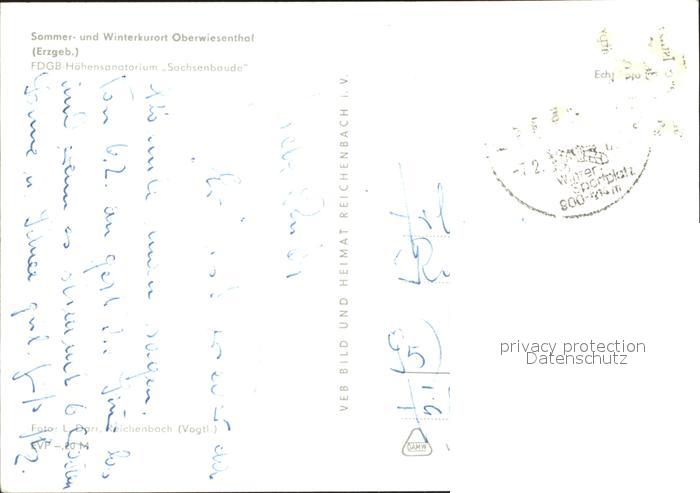 72117546 alte Postkarte Oberwiesenthal Erzgebirge FDGB Hoehensanatorium Sachsenbaude postalisch gelaufen Erhaltung siehe scans KatCode: 11110014171240