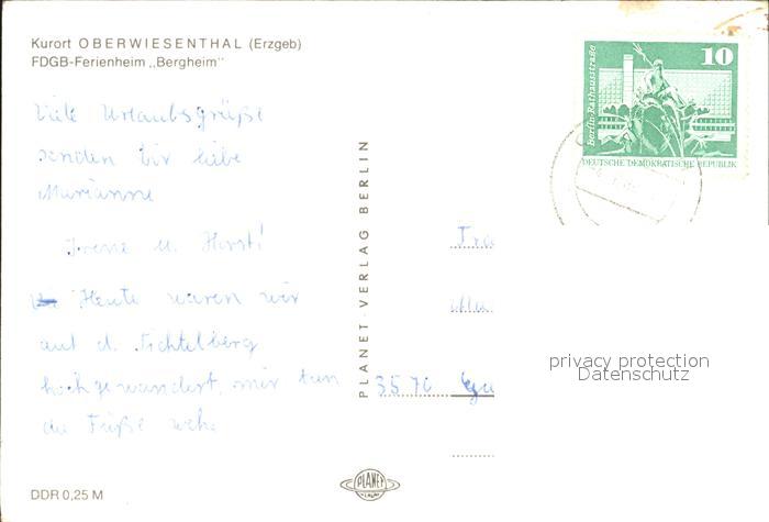 72049298 alte Postkarte Oberwiesenthal Erzgebirge Ferienheim Bergheim postalisch gelaufen Erhaltung siehe scans KatCode: 11110014171240