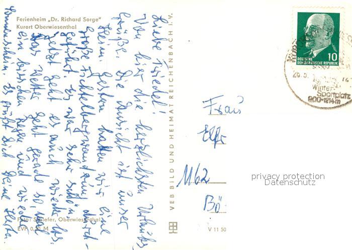 73293224 alte Postkarte Oberwiesenthal Erzgebirge Ferienheim Dr. Richard Sorge Seilbahn postalisch gelaufen Erhaltung siehe scans [LiesaD40] KatCode: 11110014171240