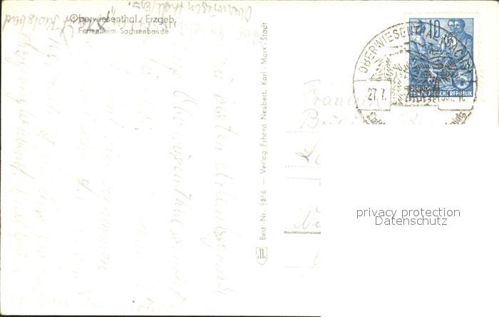 71928439 alte Postkarte Oberwiesenthal Erzgebirge Ferienheim Sachsenbaude postalisch gelaufen Erhaltung siehe scans KatCode: 11110014171240