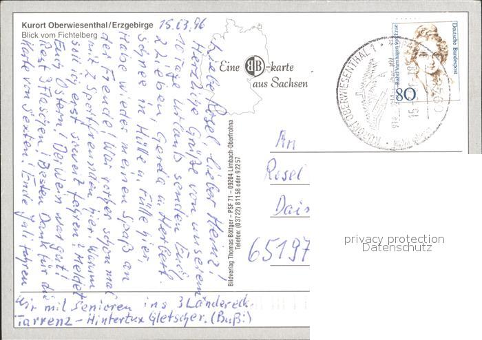 72310798 alte Postkarte Oberwiesenthal Erzgebirge Fichtelberg Gondelbahn postalisch gelaufen Erhaltung siehe scans KatCode: 11110014171240