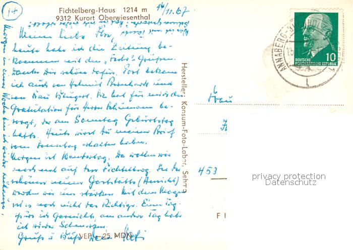 73163989 alte Postkarte Oberwiesenthal Erzgebirge Fichtelberg Haus postalisch gelaufen Erhaltung siehe scans [KathaD81] KatCode: 11110014171240