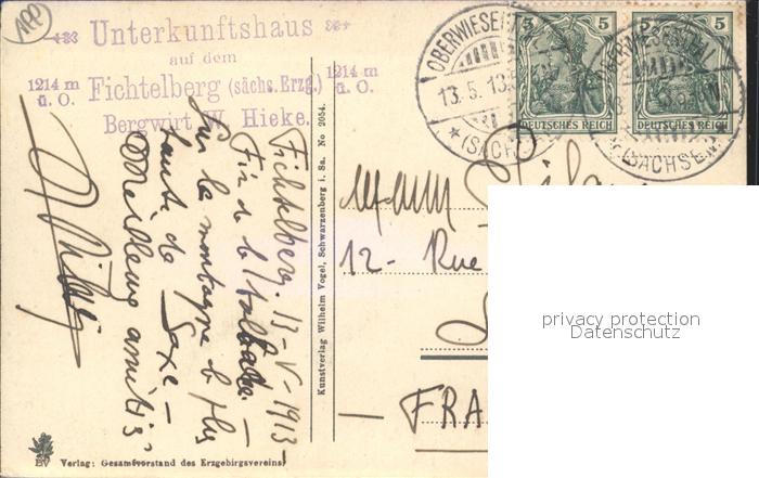 42277891 alte Postkarte Oberwiesenthal Erzgebirge Fichtelberg Neues Unterkunftshaus postalisch gelaufen Erhaltung siehe scans KatCode: 11110014171240