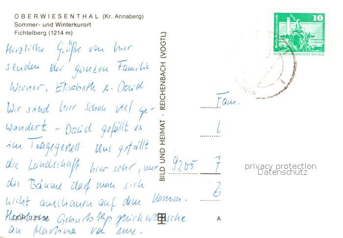73034460 alte Postkarte Oberwiesenthal Erzgebirge Fichtelberg Seilbahn Aussichtsturm postalisch gelaufen Erhaltung siehe scans [WerneD78] KatCode: 11110014171240