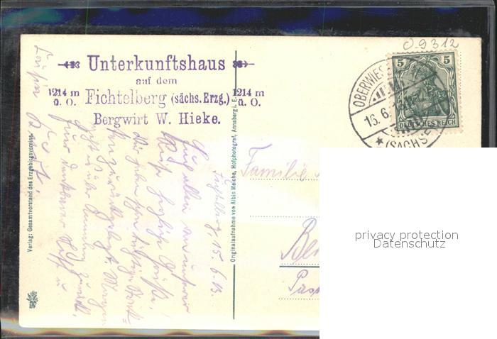 42275779 alte Postkarte Oberwiesenthal Erzgebirge Fichtelberg Unterkunftshaus postalisch gelaufen Erhaltung siehe scans KatCode: 11110014171240