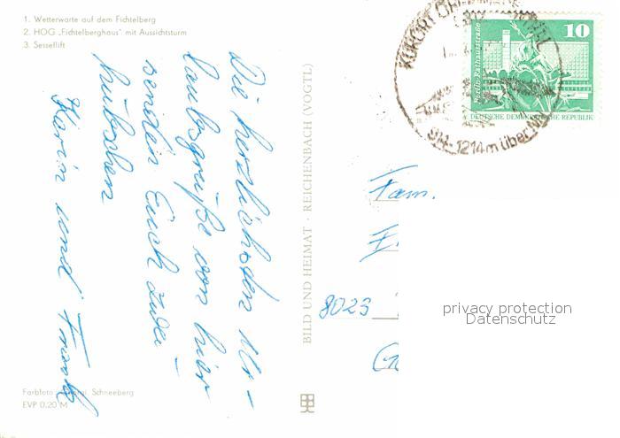 72629446 alte Postkarte Oberwiesenthal Erzgebirge Fichtelberg Wetterwarte HOG Fichtelberghaus Aussichtsturm Sessellift postalisch gelaufen Erhaltung siehe scans [WerneD78] KatCode: 11110014171240