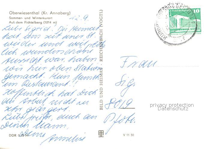 73095140 alte Postkarte Oberwiesenthal Erzgebirge Fichtelberg postalisch gelaufen Erhaltung siehe scans [KathaD81] KatCode: 11110014171240