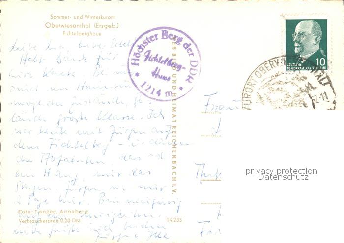 72505820 alte Postkarte Oberwiesenthal Erzgebirge Fichtelberghaus postalisch gelaufen Erhaltung siehe scans KatCode: 11110014171240