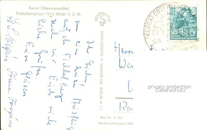 72427167 alte Postkarte Oberwiesenthal Erzgebirge Fichtelberghaus postalisch gelaufen Erhaltung siehe scans KatCode: 11110014171240