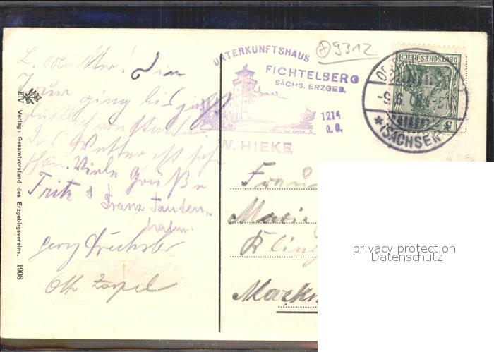 42275827 alte Postkarte Oberwiesenthal Erzgebirge Fichtelberghaus postalisch gelaufen Erhaltung siehe scans KatCode: 11110014171240