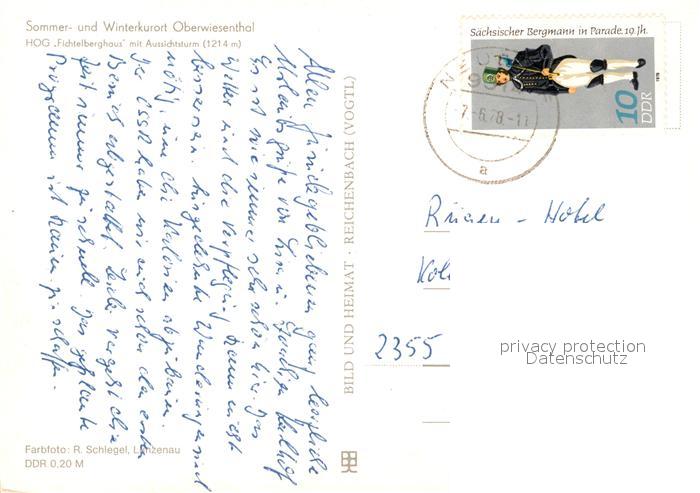 73110421 alte Postkarte Oberwiesenthal Erzgebirge Fichtelberghaus Aussichtsturm postalisch gelaufen Erhaltung siehe scans [NatalD47] KatCode: 11110014171240