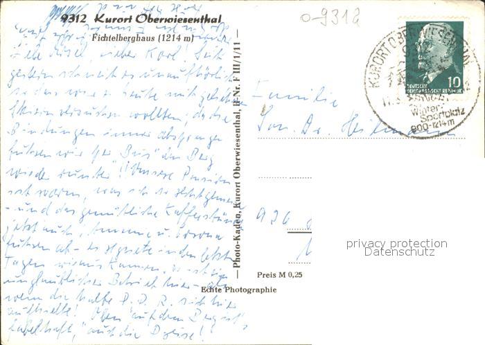 72344343 alte Postkarte Oberwiesenthal Erzgebirge Fichtelberghaus im Winter postalisch gelaufen Erhaltung siehe scans KatCode: 11110014171240