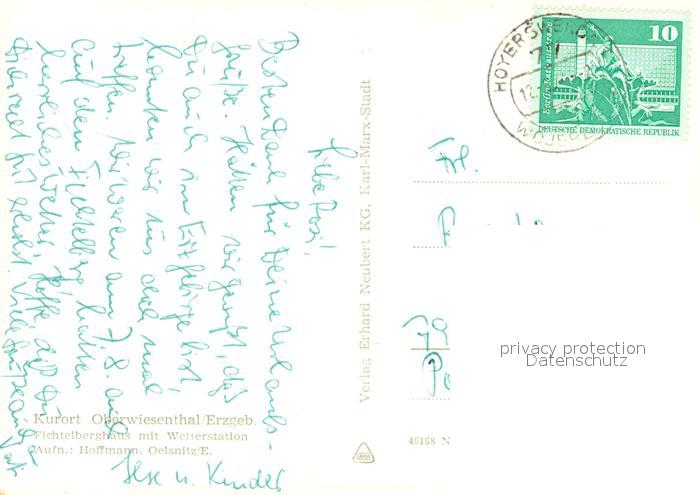 73742109 alte Postkarte Oberwiesenthal Erzgebirge Fichtelberghaus mit Wetterstation postalisch gelaufen Erhaltung siehe scans [WerneD78] KatCode: 11110014171240