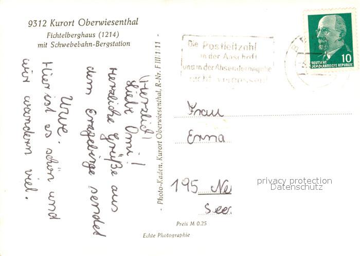 73105096 alte Postkarte Oberwiesenthal Erzgebirge Fichtelberghaus Schwebebahn Bergstation postalisch gelaufen Erhaltung siehe scans [KathaD81] KatCode: 11110014171240