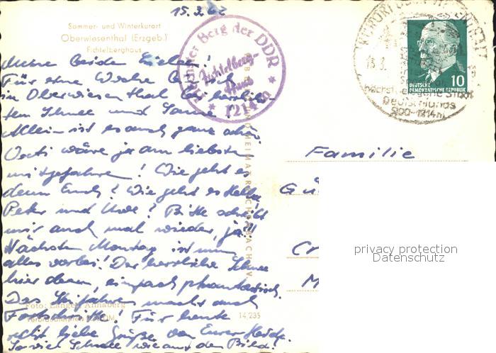 72461858 alte Postkarte Oberwiesenthal Erzgebirge Fichtelberghaus Winterpanorama postalisch gelaufen Erhaltung siehe scans KatCode: 11110014171240