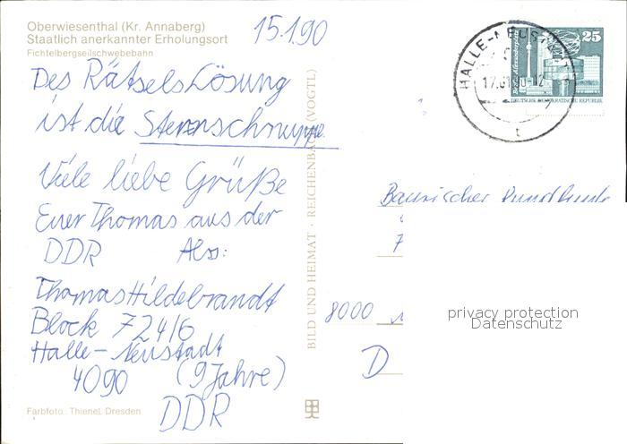 72416163 alte Postkarte Oberwiesenthal Erzgebirge Fichtelbergseilschwebebahn Winterlandschaft postalisch gelaufen Erhaltung siehe scans KatCode: 11110014171240