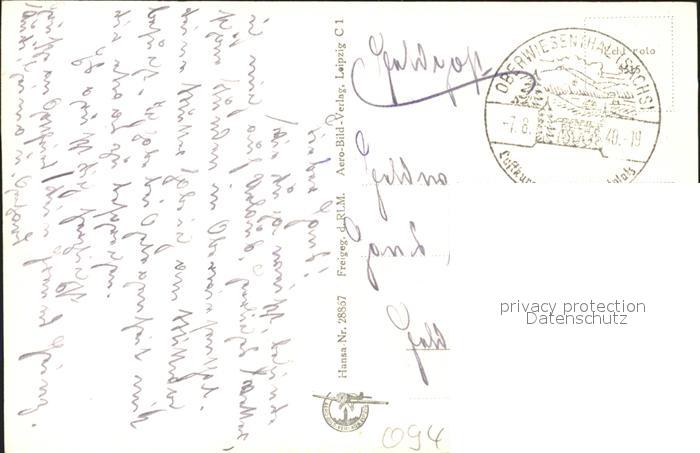 31706096 alte Postkarte Oberwiesenthal Erzgebirge Gesamtansicht Kurort mit Fichtelberg Fliegeraufnahme postalisch gelaufen Feldpost Erhaltung siehe scans KatCode: 11110014171240
