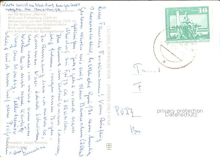 72354677 alte Postkarte Oberwiesenthal Erzgebirge Hallenschwimmbad Fichtelberg Wetterwarte Schwebebahn Sprungschanze postalisch gelaufen Erhaltung siehe scans KatCode: 11110014171240