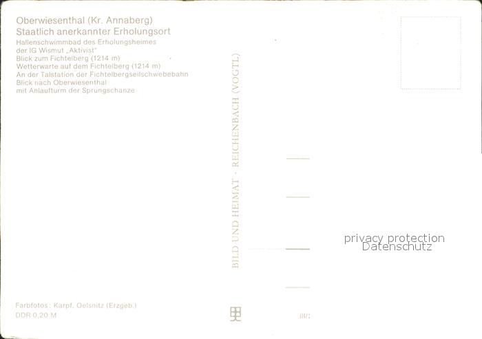 72325163 Oberwiesenthal Erzgebirge Hallenschwimmbad Fichtelberg Wetterwarte Talstation der Fichtelbergschwebebahn Anlaufturm Sprungschanze postalisch nicht gelaufen Erhaltung siehe scans KatCode: 11110014171240